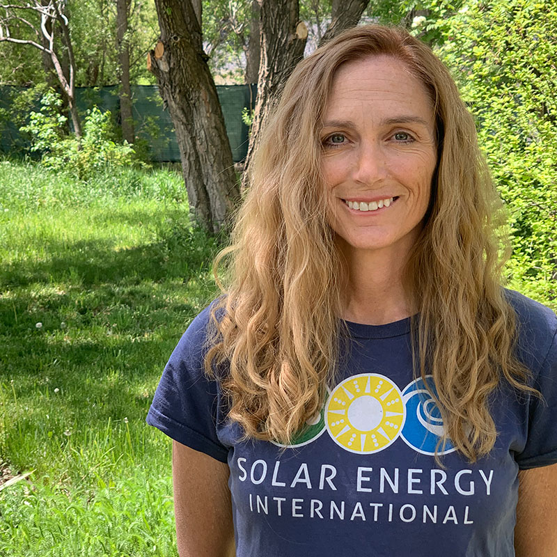Joseph has worked in the PV industry for over ten years as an installer, lead installer, project manager and operations and maintenance technician. He is currently the PV Lab Manager at Solar Energy International’s headquarters in Paonia Colorado. Joseph is excited to study and consciously participate in the systems which support his life on the earth. He has lived off the grid in an earthen home he designed and built in the foothills of the West Elk Mountains for 19 years. He enjoys spending time with his two sons, wild places, and hanging out with plants.Jessie Machuca