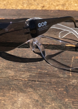 If you share our vision of a world powered by renewable energy - protect your eyes and overall vision with these SEI logo safety glasses. Comfortable, ultra lightweight frameless design. 9.5 base curve offers great wrap around protection and are available in clear or tinted styles. Hard coated polycarbonate lens offers 99% UV protection. Meets the requirements of ANSI Z87.1 Impact. Manufactured under ISO 9001/2000 quality system. Complies with ANSI, ISO 9001.